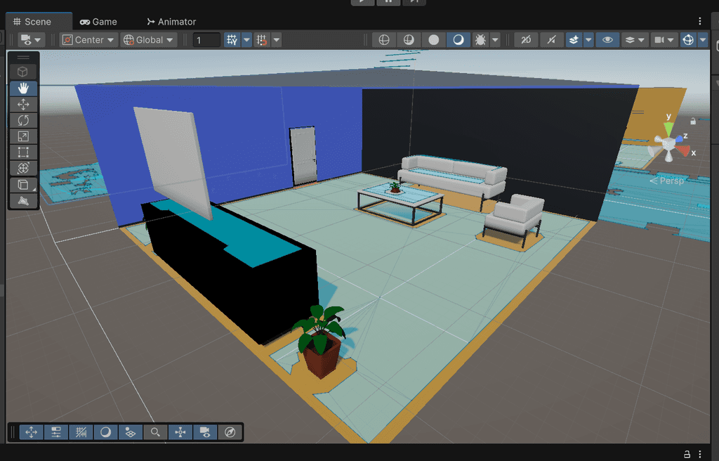 I implemented a door transition system that connected rooms to each other by loading and unloading scenes on the fly. Each door had a script that tracked which room it connected to and handled seamless scene transitions when players interacted with it.
